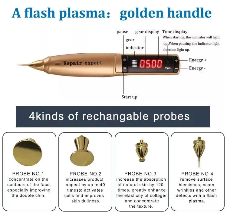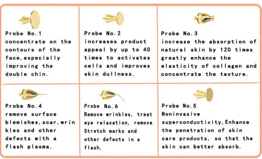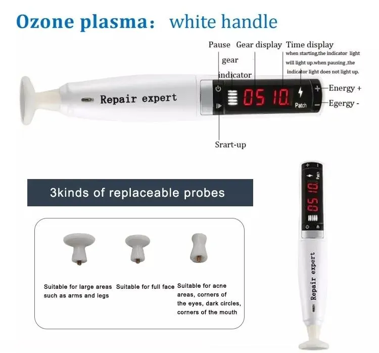 2 in 1 plasma pen consists of spark plasma and ozone plasma. Available in 7 different probes: